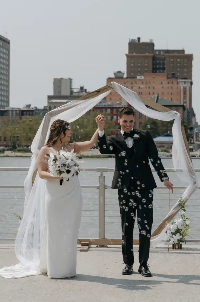 “The venue itself is gorgeous. With a ceremony space right on the water, a perfect indoor/outdoor reception layout, excellent parking, and a location that made it easy to slip away for photos at the Toledo Museum of Art...”